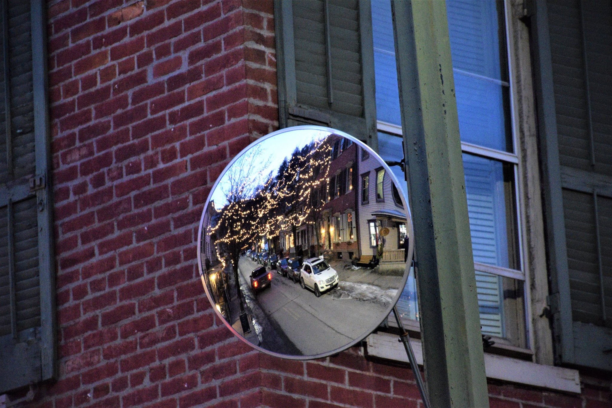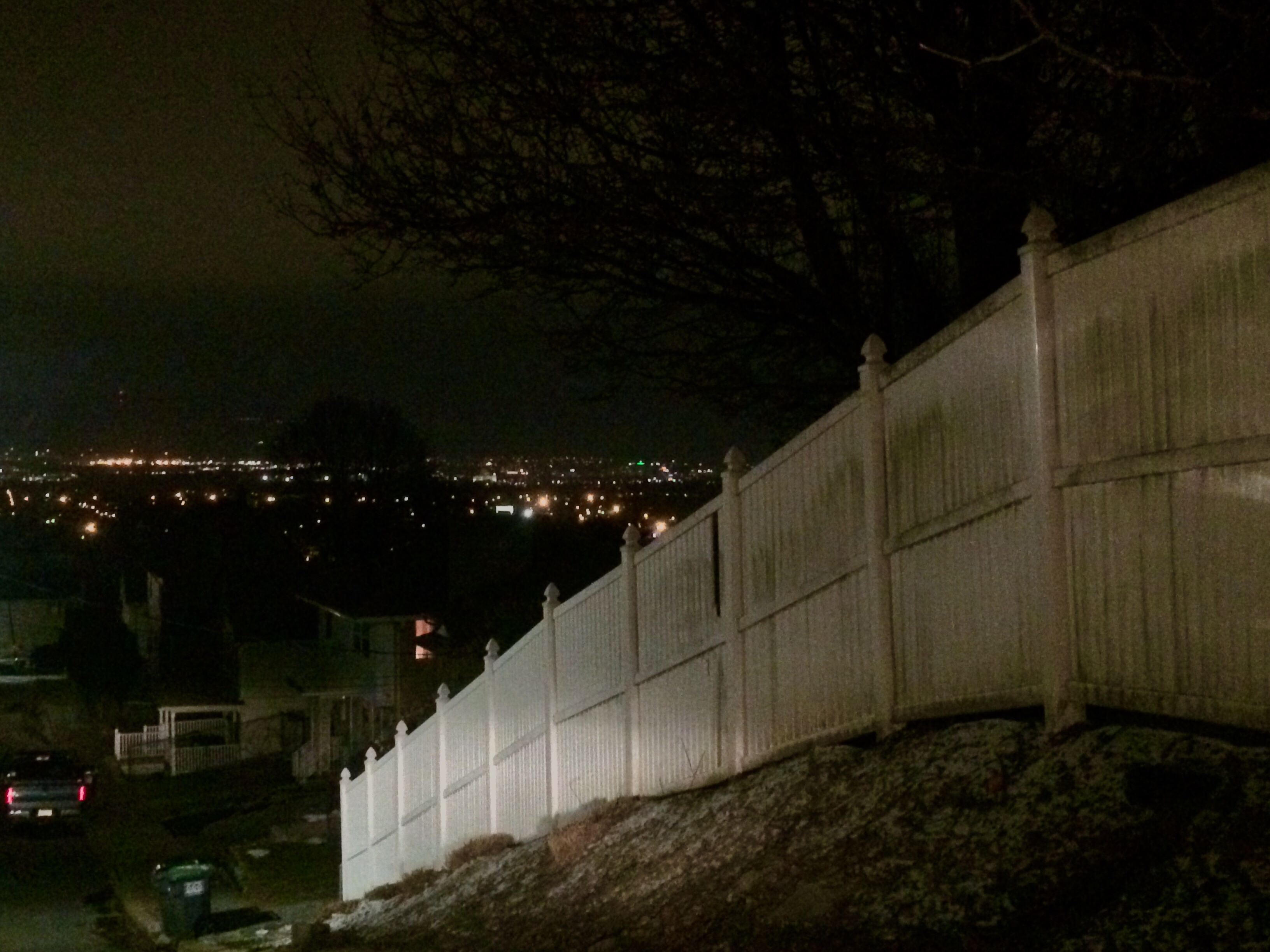 Follow the dim street lights until they stop.